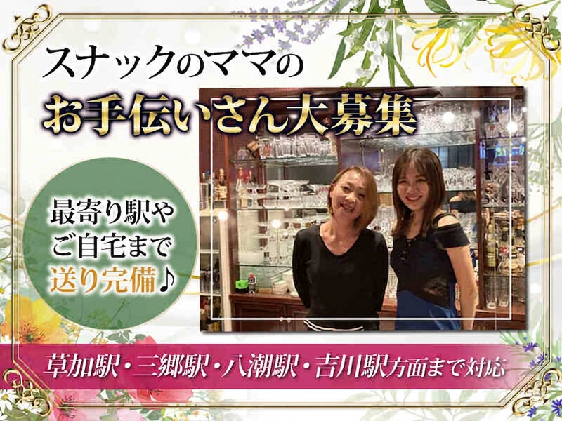仕事内容: 八潮エリアで親しまれている アットホームなスナック♪ ・・・・・・・・・・・・・・・・・・・・・ \新人さんはみんなで歓迎します♪/ ⋆˖✧⋆˖✧⋆˖✧⋆˖✧⋆˖✧⋆˖✧⋆˖✧⋆˖✧⋆ 温かくて居心地の良い空間が魅力の 「スナック ファイン」は… ⋆˖✧⋆˖✧⋆˖✧⋆˖✧⋆˖✧⋆˖✧⋆˖✧⋆˖✧⋆ スタッフもお客様も優しく、 新人さんが入ったらみんなで歓迎する とても和やかな雰囲気のお店です♪ 未経験の方でも安心してスタートできるよう、 ママや先輩がしっかりサポートします◎ ノルマや厳しいルールは一切なし! 自分のペースでのびのび働ける環境です✨ 「気楽に楽しく働きたい」 そんな方にピッタリのお店です♪ ・:.。仕事内容。.:・゚ ①お酒を作ってご提供♪ ②お客様と楽しくおしゃべり♪ ③カラオケのセットなど簡単なお手伝い♪ 難しいことは一切なし! 未経験でもすぐに慣れます◎