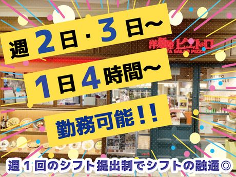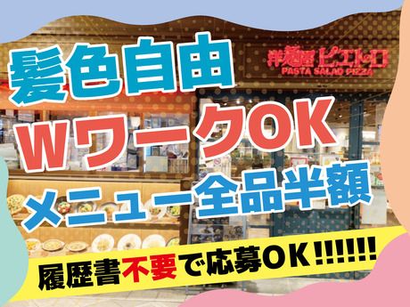仕事内容 働きやすいメリットがたくさん♪ 1980年に福岡市・天神三丁目の路地に オープンした「洋麺屋ピエトロ」。 スパゲティといえばミートソースや ナポリタンが主流だった当時に、 「炊き立てご飯に合うものは 茹でたてパスタにも合う!」 というコンセプトで明太子や高菜、 納豆などの食材を取り入れ、 和と伊を融合させたメニューで話題となりました。 そんな行列店が千里中央店に出店! 日々当店のパスタや特性ドレッシングを使った サラダを楽しみにご来店される お客様でいっぱいのお店です◎ *週2日~/1日3h~OK *友達同士の応募も歓迎♪ *どの時間帯も大歓迎! *髪色・髪型自由◎ *副業可 などメリットたくさんの当店! 『希望シフト制』なので、できるだけ「家庭」や 「学業・サークル」「プライベートタイム」なども 配慮してシフトは作成していきます! 週2日~勤務が可能なので、 自分の働きやすいワークスタイルで働けるから、 みなさん長く続けています。 テスト期間やお子様の学校行事など 優先していただいて大丈夫ですよ! 仕事内容 *調理 *仕込み *洗い物 など キッチン業務全般。 未経験スタートでも 「2週間くらいで一通りの仕事に慣れました!」 という方が多いです。 周りのスタッフが丁寧に教えますし、 マニュアルも完備しているので 安心してくださいね。 履歴書不要で始めやすい♪スピード選考も可能◎ 「家の近所だから」 「家事の合間に短時間で働きたい」 「副業としてスキマ時間に」 など、志望理由はなんでもOK! 人柄重視の採用なので、 飲食店が未経験の方もご安心ください♪ ちょっといいかも…! と思ったらお気軽にご応募くださいね◎