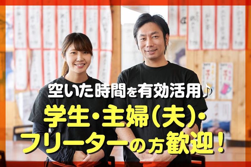 仕事内容 ✤ • • • · ·· ココがポイント ·· · • • • ✤ ✅未経験でもOK ! 「飲食店勤務をしたことない」という方もOK! 丁寧に指導いたします。経験者の方も歓迎です♪ ✅20〜40代スタッフ活躍中! 主婦(夫)さん・フリーターさん・Wワークで働く方など 様々なスタッフが活躍しています! ✅アルバイトデビューも大歓迎! 少しでも興味のある方は ぜひお気軽にご応募くださいね♪ ✤ • • • · ·· · • • • ✤• • • · ·· · • • • ✤ ✅具体的なお仕事内容  ̄ ̄ ̄ ̄ ̄ ̄ ̄ ̄ ̄ ̄ ̄ ̄ ̄ ̄ ̄ ̄ ̄ ̄ ◆接客全般・オーダー取り お客様対応やテーブルサービスや お客様のご注文をお伺いします ◆ドリンク作り 各種ドリンクの提供 ◆レジ業務 会計対応やレジ締め ◆閉め作業 営業終了後の片付けなど 繁忙期などはこちらの業務もお願いします。 ◆簡単な揚げ物・焼き鳥の補助 調理補助として簡単な調理や 焼きものサポートをお願いします ◆簡単な仕込みの手伝い 調理前の準備作業 <時給アップや特別手当のチャンスも✨> ● ホール経験者は時給1,100円〜 ● お店のInstagramの更新や動画作成ができる人には SNS業務として特別ボーナスあり! <安心ポイント✨> 初めてのアルバイトで不安という方も、 先輩スタッフがしっかりと指導するので 安心してくださいね♪ ✅週1日~OK!金土出られる方歓迎!  ̄ ̄ ̄ ̄ ̄ ̄ ̄ ̄ ̄ ̄ ̄ ̄ ̄ ̄ ̄ ̄ ̄ ̄ 週1日~、未経験もOK! 17~23時の間で1日3時間~OK! ラストまでできる方歓迎♪ 時間はご相談に応じますので、 お気軽にお問い合わせください♪ 即働きたい人も、4月から勤務したい人も! 勤務スタート日は相談に応じます。 飲食店での経験がある方はもちろん、 未経験の方も大歓迎です! 私たちと一緒に、 お客様に喜んでいただけるサービスを 提供していきませんか? あなたのご応募をお待ちしています★