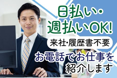 仕事内容 ■物流運送会社でシンプル業務の事務スタッフ(紹介予定派遣) 飲料水やホームセンター向け商品を扱う 物流倉庫で事務のお仕事をお願いします! 【 仕事内容 】 ・電話応対 ・パソコンにてデータ入力 ・伝票作成 など タッチタイピングができなくても大丈夫! 手元を見ながらパソコン入力できればOKです♪ 難しいお仕事はありません◎ ※紹介は派遣先と本人の同意が得られた場合のみ行います(派遣期間/3~6ヶ月) 紹介後の雇用形態は「正社員」予定です。 ■未経験OK!自分のスタイル働ける♪男性スタッフ活躍中! オフィスワークデビューやブランクからの復帰も大歓迎! 事務経験や資格、スキルは一切不要です。 エクセルやワードが使える方はすぐに慣れることができますよ◎ オフィスカジュアルでの勤務& 奇抜でなければ身だしなみは自由な職場なので かっちりスーツでなくてもOK! スーツが良いならもちろんスーツでも◎ 自分のお気に入りの恰好で働けます! ■高時給でしっかり稼げる♪週5日勤務で安定収入GET◎ 週5日のフルタイム勤務。 「しっかり働いて稼ぎたい」 そんな方にピッタリのお仕事! 土日完全休みだから、 プライベートや家族との時間も しっかり確保できますよ! 未経験でも…月収22万円以上が可能★ 正社員登用後は月給25万円からスタート♪(予定) 安定した収入が手に入ります◎ ■来社&履歴書不要!電話でお仕事のご紹介が可能です 応募後、まずはこちらから電話でご連絡いたします。 その際にご都合が良い日時をお伝えいただければ その日時に改めて電話で連絡いたします。 家事の合間や仕事が休みの日など、 あなたの都合のよいタイミングをお伝え下さい。 お電話で業務内容の説明やあなたの希望をおうかがいしたうえで 希望のお仕事をご案内いたします。