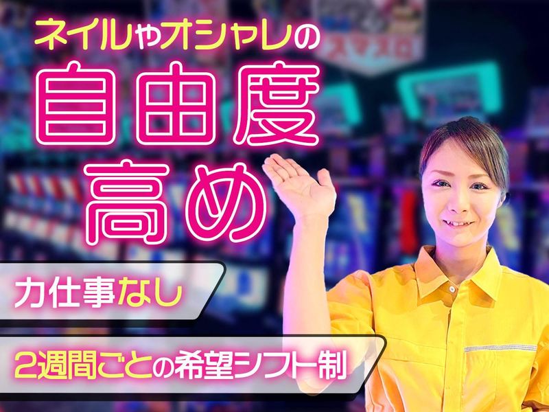 求めている人材 学歴不問/経験不問 ✅未経験者歓迎! ✅パチンコ店での勤務経験者も大歓迎! ✅フリーター歓迎! ✅フルタイム可能な方歓迎! ✅長期も歓迎! ✅初アルバイト・パート応援! 10代の学生さん、20代フリーターさん、 家事や育児と両立する主婦(夫)さんなど 幅広い層が仲良く活躍しています♪ ⭐こんな方にオススメ⭐  ̄V ̄ ̄ ̄ ̄ ̄ ̄ ̄ ̄ ̄ ̄ *人と話すのが好きな方 *接客バイトに興味がある方 *にぎやかな雰囲気が好きな方 *友達づくりの場が欲しい *笑顔がステキだと褒められたことがある *趣味や学業とうまく両立したい *パチンコが好きな方