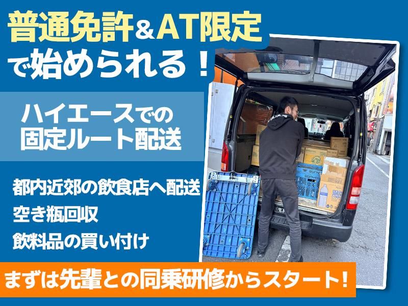 仕事内容 都内近郊の飲食店様へ 業務用酒類を配送・飲料の買い付けをするルートドライバーです。 【具体的には】 ・倉庫で商品の積み込み ・ハイエースロング(AT車)で配送 ・指定場所へ納品 ・空き瓶回収 ・伝票確認 ・飲料品の買い付け 配送先はほぼ固定ルート。 毎日違う場所を走り回る仕事ではありません。 ======== 「ドライバー経験がない」 「トラック運転が不安」 そんな方でも安心して始められる環境です。 現在活躍しているスタッフの中にも、 未経験からスタートしたメンバーがいます。 ■未経験でも安心な理由 ✔ 最初は先輩の同乗研修あり ✔ 固定ルートで覚えやすい ✔ 長距離・泊まりなし ✔ 月平均残業10時間程度 ✔ 危険業務なし いきなり一人で任せることはありません。 段階を踏んで覚えていけます。 ⸻ ■1日の流れ(例) ▼出社・点呼 アルコールチェック・配送確認。 ▼積み込み 無理のない量を積載。 ▼午前配送 固定ルートで納品。 ▼休憩(60分) ▼午後配送 追加分や回収対応。 ▼終わり次第、帰社 整理・翌日準備して退勤。 ⸻ ■こんな方に向いています ・未経験からドライバーに挑戦したい ・安定収入を得たい ・ルート配送で落ち着いて働きたい ・都内中心で働きたい