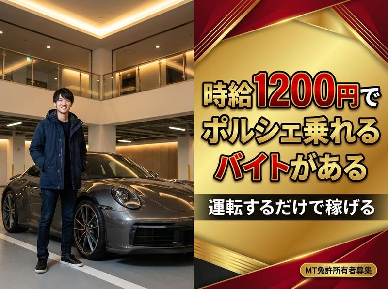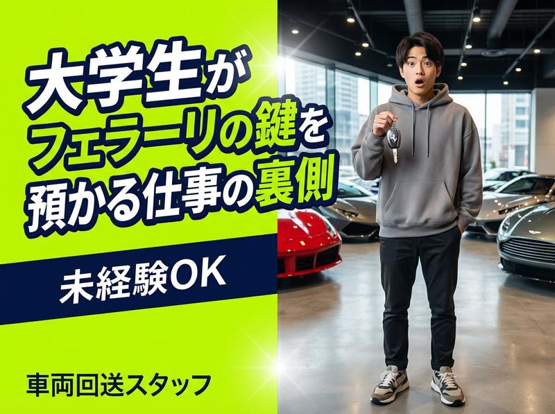 仕事内容 【大学生のバイト、まだコンビニで消耗してるの?】 大学1回生。 バイト探し、だいたいこうなる。 「とりあえずコンビニ」 「駅前の居酒屋」 「UberEatsなら自由そう」 わかる。俺もそうだった。 でも今、フェラーリの鍵を預かってる。 時給? 1,200円。 コンビニと比べてみてくれ。 ━━━━━━━━━━━━━━━ 【比較①】時給と体感のコスパ ━━━━━━━━━━━━━━━ コンビニ(時給1,117円) → レジ打ち。品出し。タバコ番号暗記。 クレーマー対応。廃棄弁当の誘惑。 6時間立ちっぱなしで日給6,702円。 居酒屋(時給1,150円) → 「生中お願いしまーす!」を 100回叫ぶ。酔っ払いに絡まれる。 髪はタバコと油の匂い。 終電逃して朝まで拘束。 UberEats(報酬制・実質900〜1,300円) → 雨の日も自転車漕ぐ。 事故っても労災なし。 アプリの気分次第で収入が変動。 確定申告も自分。 車両回送(時給1,200円) → BMW、ポルシェ、フェラーリを 運転して届けるだけ。 1人で音楽聴きながらドライブ。 力仕事なし。接客なし。 日給9,600円。 ━━━━━━━━━━━━━━━ 【比較②】身につくスキル ━━━━━━━━━━━━━━━ コンビニ → レジの打ち方(将来使わない) 居酒屋 → 大声の出し方(将来使わない) UberEats → 土地勘(まあ使う) 車両回送 → ・MT車の運転技術(どんどん上手くなる) ・高級車の扱い方(普通に生きてたら触れない) ・段取り力(複数台を効率よく回すルート組み) ・責任感(何千万の車を預かる経験) 就活の面接で話せるネタ、 どっちが強いかは明らか。 「バイトで何してた?」 「フェラーリを運転して届けてました」 面接官、絶対食いつく。 ━━━━━━━━━━━━━━━ 【比較③】人間関係のストレス ━━━━━━━━━━━━━━━ コンビニ → 店長ガチャ。ハズレたら地獄。 シフト出ろ圧。バイト同士の派閥。 居酒屋 → 体育会系ノリ。 先輩の機嫌取り。飲み会強制参加。 UberEats → 人間関係ゼロ。 でも孤独。困っても誰も助けてくれない。 車両回送 → 基本ひとり作業。 でも会社に戻れば先輩がいる。 「今日どうだった?」って聞いてくれる。 ちょうどいい距離感。 ベタベタしない。でも放置もしない。 ━━━━━━━━━━━━━━━ 【比較④】「バイト何してるの?」の反応 ━━━━━━━━━━━━━━━ 「コンビニ」 → 「あー」(興味ゼロ) 「居酒屋」 → 「まかない良い?」(そこだけ) 「UberEats」 → 「稼げる?」(金の話だけ) 「高級車を運転して届けてる」 → 「え、マジで?」 → 「どんな車乗れるの?」 → 「すげえな」 大学で話すネタになる。 インスタのストーリーに 「今日の仕事」って載せたら DMが来る。マジで。 ━━━━━━━━━━━━━━━ 【比較⑤】シフトの自由度 ━━━━━━━━━━━━━━━ コンビニ → 「入れる日全部書いて」 → 休み希望出しにくい空気。 → テスト前も「人いないから来て」 居酒屋 → 金土は絶対出ろ。 → 大学のイベントより店優先。 UberEats → 完全自由。 → でも自由すぎてダラける。 車両回送 → 週4日以上、平日メインでOK。 土日祝休み。9:00〜18:00の固定。 大学の時間割と合わせやすい。 テスト期間の調整もできる。 「大学優先でいいよ」って 最初に言ってもらえた。 ━━━━━━━━━━━━━━━ 【比較⑥】将来につながるか ━━━━━━━━━━━━━━━ コンビニ → 3年やっても「元コンビニバイト」 居酒屋 → 3年やっても「元居酒屋バイト」 UberEats → 3年やっても「元配達員」 車両回送 → 社員登用制度あり。 バイトから正社員になった先輩がいる。 大学卒業後の選択肢が増える。 「とりあえず就職しなきゃ」じゃなくて 「ここで正社員になるのもアリだな」 って思える場所がある。 免許取得費用の補助もある。 中型・大型を取れば、 さらに仕事の幅が広がる。 ━━━━━━━━━━━━━━━ 【比較⑦】正直、微妙なところ ━━━━━━━━━━━━━━━ 全部キラキラに書いたら嘘くさいから 正直に言う。 ・AT限定不可。MT免許がいる。 → でも君、MT持ってるよね? それだけで応募資格クリア。 ・朝9時出勤。 → 1限ある日はキツい。 でも大学と曜日で調整できる。 ・最初の1〜2ヶ月は覚えることが多い。 → ルート、段取り、車の扱い。 でも先輩がマンツーマンで教えてくれる。 ・雨の日は神経使う。 → 何千万の車だから当然。 でもそれが「責任ある仕事してる」って 実感になる。 ・1日1万歩くらい歩く。 → ジム代が浮くと思えばプラス。 ━━━━━━━━━━━━━━━ 【結論】 ━━━━━━━━━━━━━━━ 大学生のバイトに求めるもの、 3つあると思う。 ①金(時給1,200円。悪くない) ②話のネタ(「フェラーリ運転してる」は最強) ③将来の糧(就活で話せる。社員登用もある) コンビニは①だけ。 居酒屋は①だけ。 UberEatsは①だけ。 ここは3つ全部ある。 しかも、MT免許持ってる大学生って 実はそんなに多くない。 君のその免許、ここで活きる。 体験乗務もある。バイト代も出る。 合わなか