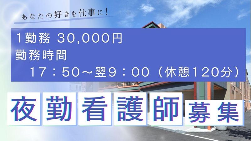 夜勤専従看護師の募集!1勤務3万円◎週1日~&WワークOK!