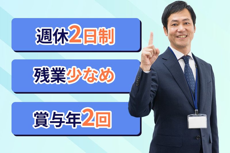 休日休暇 週休2日制(隔週土曜休日) 年間休日103日 GW・夏季・年末年始休暇あり 有給休暇あり
