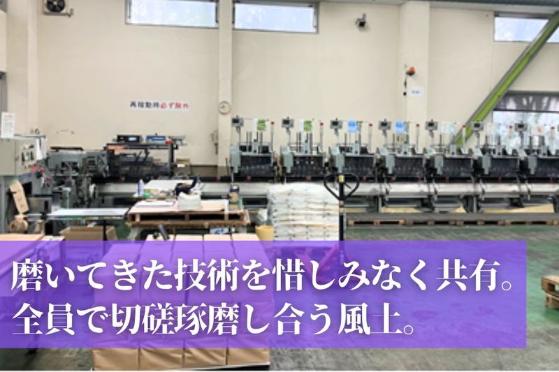 仕事内容: *【未経験OK】知識・技術をイチから教えます *【手厚い待遇】賞与年2回◎各種手当充実 *【年間休日126日】プライベートとの両立も◎ *【雰囲気】やさしい工場長や面倒見のよい先輩 *【男女活躍中】性別経歴など問わず活躍できます ===================== 【仕事内容】 中綴じ製本作業をお願いします。 「中綴じ機」とは紙をセットして 冊子を仕上げる製本機械のこと。 操作やコツはイチからお教えします! 扱う印刷物/会社案内・パンフレット・情報誌など <お仕事詳細> 製本作業が中心ですが、 製品を正しく仕上げるために社内連携も行います。 ■中綴じ機のオペレーション ・機械の設定と調整 ・消耗品の発注 など ■社内対応 ・営業、工務部門との打ち合わせ ・お客様の要望に応じた調整 <一緒に働く仲間について> 成田製本工場の平均年齢は40代中盤。 長い方では勤続20年を超える方もおり、 定着率の高さには自信があります! 新しい仲間が加わるのを楽しみに待っています! ---------------------------------- ご応募は応募ボタンから! 面倒な登録もなしで 1分ほどで完了します! お電話での応募・問い合わせも お待ちしています! TEL:0479-76-7231(採用担当) ----------------------------------