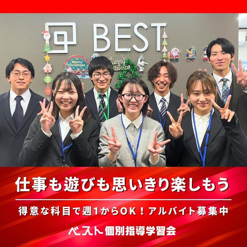 仕事内容 【講師アルバイト募集】 はじめてでも、安心して楽しくスタート。 子どもが相手の、明るく安心な職場 はじめてのアルバイトにもおすすめです。 得意な科目でOK 週1回・1日1コマ〜 長期休みのスキマ時間にも◎ 群馬県内21教室で同時募集中 ★ ベストが選ばれる理由 ★ ◆ 教えやすい授業スタイル ホワイトボードを使った授業なので、 説明しやすく、初めてでも安心。 ◆ 個別プログラムで迷わない 生徒一人ひとりの個別プログラムに沿って進めるため、 「何を教えればいいか分からない」心配はありません。 ◆ 未経験でも安心の研修 授業の進め方から入試制度まで、研修が充実。 先輩講師がイチから丁寧にサポートします。 ◆ 頑張りが評価される昇給制度 授業等級制度により、等級に応じてコマ給アップ。 講師経験者は、経験をすぐに活かせます。 ◆ 楽しいから続く 講師195名アンケートより 楽しさ99%/満足度93% 成績アップMVPなど、頑張りをきちんと評価。 ◆ 学業と両立しやすい固定シフト 曜日・時間固定制。 決まったリズムで、無理なく続けられます。 ★ 仕事内容 ★ 小・中学生中心の個別指導 1授業で生徒は最大2名まで 生徒の成長を実感できます 「数学だけ」「英語から」 など希望相談OK ★ 講師の一日はこちら ★ https://recruit-best-k.com/parttime-job/ ≪会社概要≫ 設立:2005年(創業20年) 事業内容:個別指導学習塾 教室数:群馬県内21教室