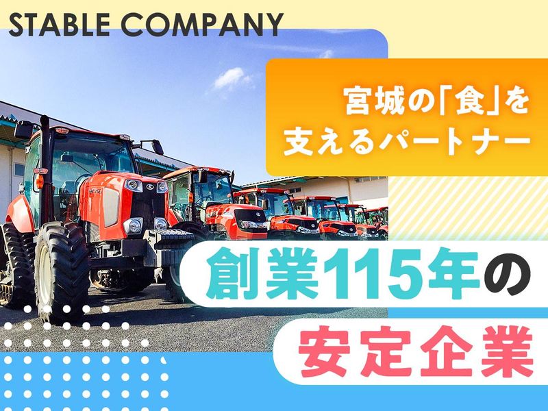 仕事内容 「宮城に根ざして、長く活躍したい!」 「経験ゼロだけど営業に挑戦したい」 「ワークライフバランスも大事にしたい」 ――その想い、【五十嵐商会】ですべて実現できます! ━━━━━━━━━━━━━━━━━━━━ ✨POINT01✨圧倒的な安定性 ━━━━━━━━━━━━━━━━━━━━ ●創業から“115年”の歴史を誇る専門商社 ●大手農機具メーカー「Kubota」の特約店 ●県内トップクラスのシェア率を達成 農機具・資材の提案を通して築いてきた、 多くの農家さんとの信頼関係が強み。 また「食」という景気に左右されにくい 業界だからこそ、長期キャリアを描けます◎ ★転居を伴う転勤もなし! ━━━━━━━━━━━━━━━━━━━━ ✨POINT02✨安心の営業スタイル ━━━━━━━━━━━━━━━━━━━━ ●新規のテレアポや飛び込みなし! ●数字よりも「人とのつながり」重視 ●1ヶ月の導入研修×OJTで着実に成長! 既存顧客が中心だから提案しやすい◎ ガツガツよりも、じっくり寄り添うのが当社の営業です。 あなたの活躍はしっかりと教えていきますのでご安心ください! ★もちろん頑張りはインセンティブで還元! ━━━━━━━━━━━━━━━━━━━━ ✨POINT03✨働きやすさ充実 ━━━━━━━━━━━━━━━━━━━━ ●お休みは固定の基本土日祝休み ●残業月平均20h以下と少なめ! ●夏季・年末年始は9日間の長期休暇! 社員が無理せず取り組めるよう、 しっかり休める環境を整えています。 8日間の有給奨励日もご用意◎ しっかりリフレッシュしながら取り組めます! ――安定も、営業スキルも、プライベートも手に入る当社で、 あなたも新たな一歩を踏み出しませんか? ▼ ▼ ▼ 【具体的な仕事内容】 ✅農家さんのもとへ訪問 1日30件程度(お客様1軒あたり月3回目安)を訪問。 出張はなく、営業所から車で30分以内の場所へ伺います。 ✅ヒアリング・ご提案 「最新の機械の調子」や「作業効率化の悩み」など、農家さんの“本音”をキャッチ! 引き出したニーズをもとに、 トラクターなどの大型農機具から肥料等の資材、最新のAI管理システムまで、 幅広くご案内し、解決策を提案します。 ✅アフターフォロー 部品交換やメンテナンスを実施します。 ※複雑な修理は整備担当者が対応します! 最新の農機具や資材をご案内し、 農家さんの「頼れるパートナー」として活躍していきましょう◎