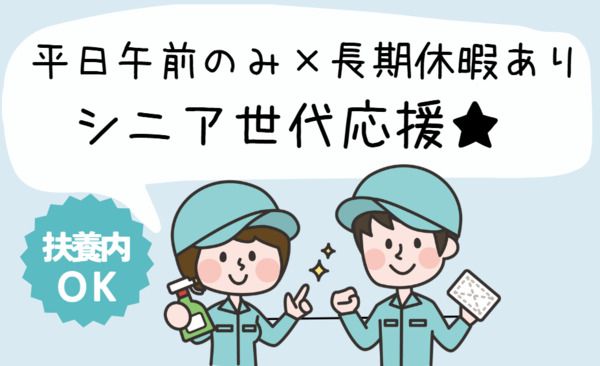 【土日休み+長期休暇あり】 家の掃除と同じ感覚で稼げちゃう♪ 未経験スタートも大歓迎! シニア世代応援します✨