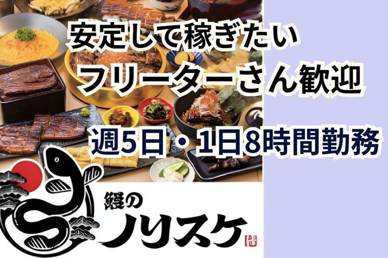 仕事内容 【鰻のノリスケ】にてスタッフを募集✨ 30店舗以上のオシャレなお店が立ち並ぶ、中区栄の商業施設マルエイガレリア3階✨ 週5日・1日8時間勤務できる方の募集です! しっかり稼ぎたいフリーターさん大歓迎! \この求人のポイント/ ⭐マルエイガレリア内に勤務 出勤前や退勤後にショッピングもできる! ⭐栄駅直結 雨の日も通勤ラクラク! ⭐美味しいまかないあり スタッフから大好評! ⭐ネイルOK、ピアスOK 髪色自由でオシャレに働ける! \こんな方にぴったり/ ・安定した収入を重視したい方 ・まかないありで節約したい方 ・オシャレ自由で自分らしく働きたい方 【鰻のノリスケについて】 厳選された鰻を使用し、ふんわりパリッと! 鰻重や鰻を使った料理がお楽しみ頂けます。 お昼は定食スタイル、夜は居酒屋として、幅広い年齢の方が楽しめるお店を目指しています。 【お仕事内容】 店内業務全般をお任せします。 ■お客様のご案内/オーダー取り ■フードの配膳/レジ会計 ■料理の仕込み(食材のカットなど) ■盛り付け/洗い物 充実した研修があるので未経験も安心です✨ ======== ✅フリーターから正社員へ。 ステップアップ可能! ======== フルタイムで安定して働きながら、将来は正社員も目指せる環境です。 頑張りや意欲をしっかり評価し、正社員登用のチャンスもご用意! まずはアルバイトからスタートして、安定したキャリアを築きたいフリーターの方にぴったりです。