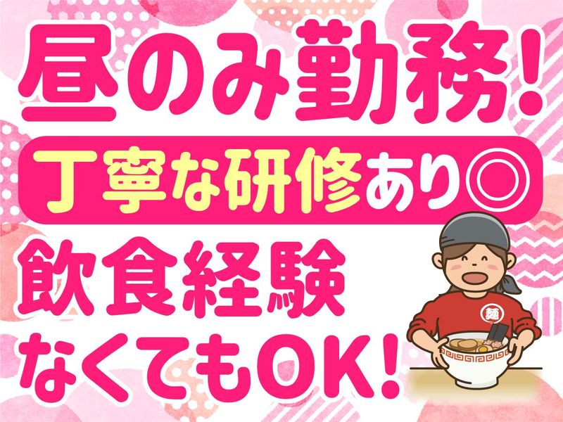 求めている人材 10月オープンの新店舗! 複数人採用予定で採用率UP! 【必須】 ◆週4日以上勤務できる方(曜日相談可) ◆ラーメン・まぜそばが好きな方 【歓迎】 ◆朝から勤務できる方 ◆てきぱき働きたい方 ◆人と話すことが好きな方 ◆扶養内OK ◆主婦活躍中 ◆学生活躍中 ◆ブランクOK ◆フリーター歓迎 ◆未経験歓迎