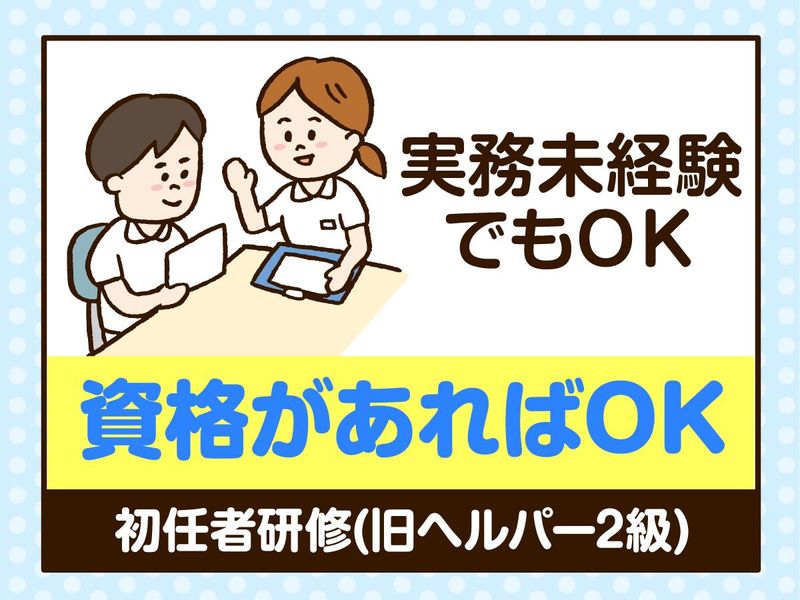 求めている人材 <必須資格> 介護職員初任者研修(旧ヘルパー2級) <活躍中> ・20代・30代の若手メンバー ・扶養内で家庭と両立の主婦さん ・40代・50代の中高年の方 ・60代~定年後のシニアの方 ・異業種からの転職 <こんな方歓迎> ・ブランクのある方 ・資格を活かして働きたい ・長期で安定して働きたい方 ・介護スタッフのご経験がある方は尚歓迎! ・扶養内・Wワーク可◎