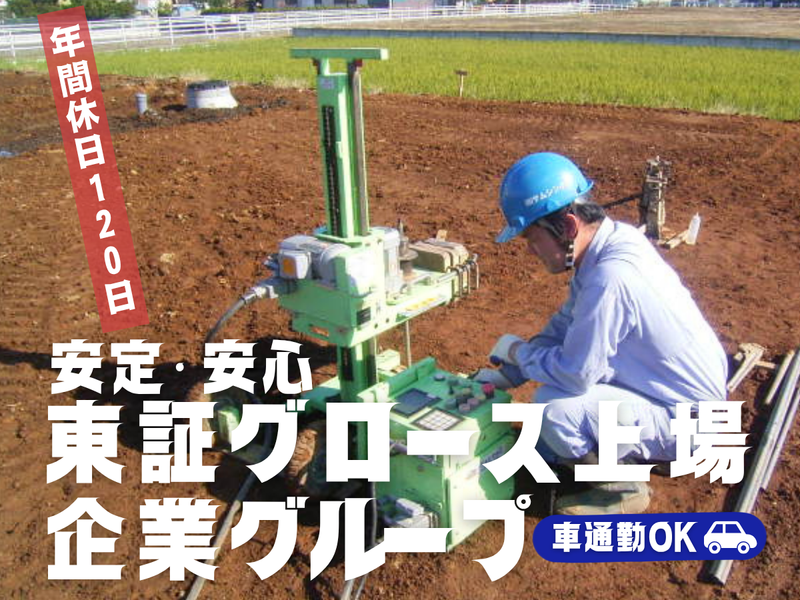 仕事内容 \ え、これで建物が建てられるかわかるの!? / 見た目は地味。でも、社会に超必要!! そんな“地盤調査”のプロを目指しませんか? ✅ 未経験でも月給30万円スタート ✅ 年間休日120日で休みしっかり ✅ 20代・30代活躍中!未経験スタート多数! ✅ 1人立ち後に月給1万円UP ✅ 資格取得で給与もUPできるお仕事 ✅ 上場グループ企業! \2025年4月から年間休日120日へ/ 「もっと安心して働ける環境を」 そんな想いから、 社員のライフワークバランスを考え、 年間休日を増やすことになりました! - 【どんな仕事?】 建物を建てる前に、 その土地の“地盤の強さ”を調べる仕事です。 調査はすべて「専用機械」で行うので、 専門的なスキルがなくても大丈夫。 ・地面に穴を開けて、地盤をチェック ・調査結果をPCに入力(フォーマットあり) ・1日3件ほど現場を社用車で回ります! 半年ほどで1人立ち! 1人立ち後は月給1万円UP!! - *機械は60kg~80kgくらいあるので、 積み込む時などに少し重いですが、 車輪は付いてるのでご安心ください。 施工作業、土木作業員の知識、経験がなくてもOK! もちろん前職で現場経験のある方も、 多数活躍しております。 1人立ち後は、基本1人での作業なので コツコツ・モクモク働けます! - 【1日の流れ】 機材を整えて現場作業開始 終わり次第機材をまとめて次の現場へ! ※1日3現場ほど ※1現場2~3時間ほど ↓ 帰社してから事務所業務 ※報告書作成、翌日の準備 現場資料の用意、ルート策定など ↓ 退勤 - 【会社について】 当社は東証グロース上場企業である SAAFホールディングスグループ。 安全な街づくりを目指し、 建物を建てる前の『地盤調査』と 『地盤改良』を手掛けています。 地盤を手掛けている企業は日本では数少なく、 その中でも当社は業界トップクラス! 年間30,000件の調査・工事実績があります。 家やマンション、ビルなど建物を建てる前に 必ず必要とされるためのインフラ事業。 事業所は関東エリアを中心に 全国に28拠点を展開中! 担当エリアも拠点から車で1時間範囲! 少しでも気になったら、 まずはお気軽にご応募ください。