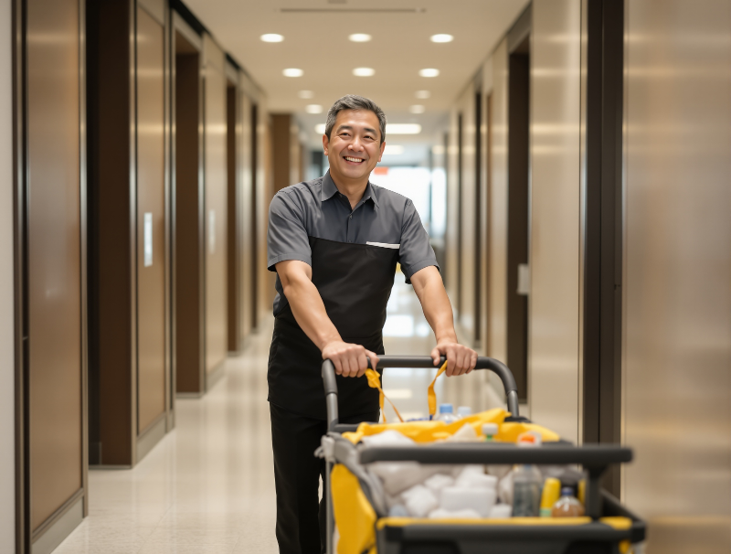 アピールポイント: ◆ 働きやすさのポイント ◆ * 8:00~15:00勤務で家庭や私生活との両立も◎ * チーム体制でのお仕事なので、清掃未経験でも安心! * 丁寧な研修あり、慣れるまでは先輩がしっかりサポート * スピードよりも「きれいに仕上げる」ことを大切にしています * 年齢不問・ブランクOK・主婦(夫)・シニア世代も活躍中 明るく開放的なホテルでの勤務です。 スタッフ同士の連携も良く、和やかな雰囲気の中で作業を進めています。 「無理なく、長く続けられる仕事を探している」方にぴったり。