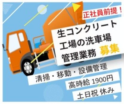 生コン工場での洗車場管理スタッフ/時間固定8:00-17:00又は15:00-0:00/土日祝休み