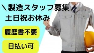 特徴 未経験者活躍 / 第2新卒活躍 / 残業なし / 上場企業 / フリーター活躍 / マイカー通勤OK / 職場見学可 / 土日祝日休み / 新卒採用 / リモート面接OK / 面接時マスク着用 / 即日勤務OK / 男性が活躍 / 残業少なめ / 20代活躍中 / 30代活躍中 / ミドル活躍中 / 給与前払い制度あり / 長期 / 週払い・日払いあり