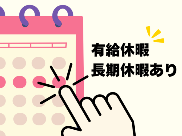 休日 土日祝休み ※年間休日130日(GW・夏季・年末年始休暇あり)