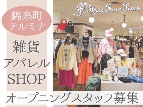 その他 未経験OK、大学生歓迎、フリーター歓迎、即日勤務OK、長期歓迎、週4日以上OK、シフト制、昇給あり、交通費支給、社員登用あり、服装自由、髪型自由、駅チカ・駅ナカ、オープニング、急募、面接時マスク着用、月1シフト提出、ブランクOK、ピアスOK、ネイルOK 【ブランド名】 Three Four Time(スリーフォータイム) 【事業内容】 "アトリエ"や"女の子の部屋"のイメージの店内に、国内外から買い付けた雑貨を中心に取り揃えたセレクトショップ゙です。
