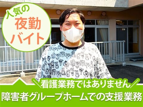<看護業務ではなく支援員としての業務>月2回から勤務OK!定員6名の障害者グループホーム◆駅徒歩圏内♪人気の夜勤アルバイト求人◎【小田原市、根府川駅、障害者グループホーム、看護師、夜勤アルバイト】