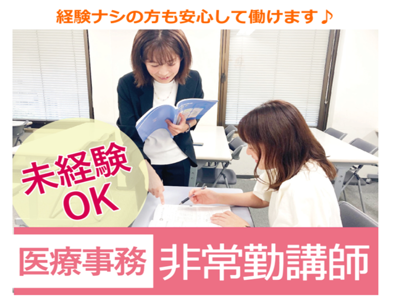 求める人材: 【応募資格・条件】 ◎副業・WワークOK ◎ブランクがある方も歓迎 ◎講師未経験OK <必須条件> ・医療事務資格をお持ちの方 ・医療事務の実務経験をお持ちの方 ※経験年数・医療機関の規模は問いません これまでのご経験を、 “教える仕事”で活かしていただけます。 【こんな方を歓迎します】 ・医療事務の経験や資格を活かして働きたい方 ・医療業界に関わり続けたい方 ・人に教えること、育てることに興味がある方 ・誰かの役に立つ実感を得られる仕事がしたい方 【歓迎/優遇条件】 下記の資格・ご経験をお持ちの方は、よりご活躍いただけます。 ・診療情報管理士の資格をお持ちの方 ・看護師資格をお持ちの方 【こんな方に特におすすめ】 ・現場から少し離れ、落ち着いた働き方をしたい方 ・子育てや本業と両立しながら働きたい方 ・これまでのキャリアを“次の世代に伝えたい”方