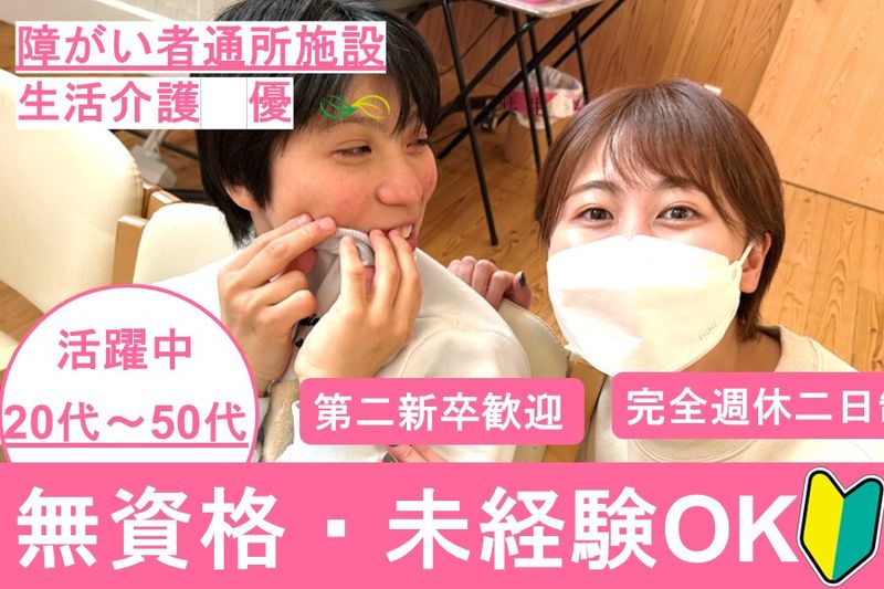 【雇用形態】 正社員 【契約期間】 雇用期間の定めあり(3ヶ月) ※試用期間中の労働条件は同条件 【その他】 #【ST-K02】 無資格・未経験可の介護職員・介護スタッフ大募集!障がい児や障がい者の生活介護、生活支援のお仕事です。ブランクがあっても大丈夫です。 障がい者グループホームや障がい者デイサービス、放課後等デイサービスなどで介助員、支援員として働いておられた方は喜んでお迎えします。 特別養護老人ホームサービス付き高齢者向け住宅、住宅型有料老人ホームやグループホームといった介護施設での勤務経験はありませんか。 社会福祉法人などで、デイサービスやショートステイ、訪問介護などに、ホームヘルパーや生活支援員として関わっておられた方にもおすすめです。 現在パート介護士や夜勤専従の介護士としてご活躍されている方で日勤正社員として長く働きたいとお考えの方もぜひ前向きにご検討ください。 介護業界でのキャリアアップを目指している方には、初任者研修や実務者研修、介護福祉士などの資格取得サポート制度をご活用いただけます! 第二新卒、20代、30代の若手から、40代、50代の中高年・ミドル、60歳以上のシニア世代の方まで幅広い年齢層の介護スタッフが活躍中です。 ハローワークなどで「未経験可」「資格取得支援あり」といった条件の正社員のお仕事をお探しの方からのご連絡もお待ちしています。