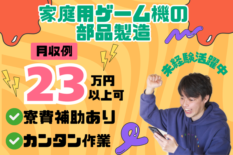 仕事内容 ○寮・社宅完備 ○20~50代活躍中、男性活躍中 ○未経験・初心者活躍中 ○正社員登用あり ○駐車場完備、バイク・マイカー通勤可能 【 仕事内容 】 大人気ゲーム機の部品製造をお願いします。 ◆作業の流れ (1)樹脂部品をマシンにセット (2)部品が少なくなったら補充 (3)トレイに入った部品を目視検査 基本的な作業はこれだけです! 機械に異常があった時はタッチパネルにで 微調整や原点復帰をします。 部材:計量カップのようなもので補充し 1個10g前後の軽量物です。 ◆目視検査 1トレイ80個を1次検査2分、 2次検査を5分かけて 両面の検査をします。 作業は1つの機械に4名体制で行います。 かんたんなパソコン入力もあります! 《 働きやすい環境 》 ゲーム機の部品を取り扱うので 重量物はありません! 工場内は空調完備された環境なので 身体への負担が少ないです。 お願いするのは部品のセットや検査が メインの職場です☆ 《 未経験でも活躍できる職場 》 幅広い年齢の方が活躍中! かんたんでモクモク集中できる作業なので 工場未経験でも安心して 始めることができます♪ 《 1日のスケジュールはコチラ! 》 (例)日勤 08:00 出社・着替え 08:15 作業開始! 機械に部材をセットしたり、 出来上がった部品をチェックします♪ 10:05 小休憩(10分) 10:15 作業再開 12:25 昼食・休憩(40分) 13:05 作業再開 15:10 小休憩(10分) 15:20 作業再開 17:15 作業終了/退勤 工程によって残業があります。 小休憩があることでホッと一息できます♪ 《 4日働いたら2連休!! 》 「週5勤務は疲れるな」 そんな方にオススメ!! 4勤2休だから4日頑張れば 2連休が待ってます☆ 平日にお休みがあるのも 嬉しいポイントです。 お休みの計画も組みやすい◎ 《 なんと!社宅費25,000円OFF! 》 / 寮は【大崎市古川周辺】にアリ! 家賃50,000円ほどの アパートが半額で住める! \ 生活に必要な家具家電も 必要に応じて支給OK! もちろん初期費用などもかからないので、 すぐに働きたい方におすすめです♪ ※エヌエス・テック株式会社での雇用となり、 案件先での勤務となります。