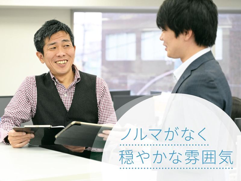 仕事内容 ────────────── 【当社の魅⼒】 ────────────── 1. 残業ほぼなし →仕事をするときは仕事をして、 定時になったらきっちり帰る⾵⼟です。 直近1年の営業部平均残業時間は ⽉5時間程度です。 2. 年間休⽇127⽇ (2025年実績) →⼟⽇・祝⽇はお休みで、 ⻑期連休8⽇以上が年3回。 年間休⽇数は年によって変わりますが、 毎年125⽇以上あります。 3. ノルマに追われない →達成⽬標はありますが、ノルマはなく、 お客様⼀⼈ひとりとちゃんと 向き合えます。 4. ⼦育てとの両⽴も可能 →産前・産後休暇/育児中の 始業時刻変更・時短勤務/ ⼦の看護休暇 などの制度があります。 ────────────── 【仕事内容】 ────────────── 株式会社アドバンは 医療・介護業界に特化した広告代理店で、 お客様の多くが病院・介護施設です。 東武スカイツリーライン 「⽵ノ塚駅」東⼝から徒歩5〜7分 の場所にあります。 営業スタッフ(ディレクター)には、 採⽤・集客にお悩みのお客様に向けて、 「求⼈広告(Indeed、 医療系求⼈専⾨サイト医療21)」や 「採⽤サイト/ホームページ」の 提案を⾏ってもらいます。 〈具体的には〉 1.新規顧客獲得に向けたテレアポ 2.医療業界向けの広告企画の⽴案 および提案 3.お客様との打ち合わせやニーズの ヒアリング 4. 受注後のお客様のフォロー 5. 掲載後の効果チェック、改善提案 【新人営業の1日の流れ】 9時 出社/テレアポ 11時 先輩の商談先へ移動 12時 休憩 13時 商談に同行 15時 帰社 16時 テレアポ/日報記入 18時 退社 〈未経験でも安⼼して働けます〉 医療・介護の知識はゼロでOK︕ 中途⼊職者にも教育担当の先輩が付きます。 いきなりテレアポ・営業をするのではなく、 まずは先輩とのロールプレイングから 始めます。 その⽅のペースに合わせて 何度でも⾏うので、 確実に学んでいくことができますよ。 先輩の営業に同⾏するのはもちろん、 アポ獲得後は先輩と⼀緒に訪問するので、 安⼼して業務に取り組める環境です。 ────────────── 【先輩の声】 ────────────── 「⼟⽇出勤がなく、⻑期休暇もあるので、 働きやすいです。残業はほぼなく、 定時で帰れることがほとんどで、 帰りにくい雰囲気もありません」 (⼊社1年⽬の営業スタッフ) 「業務に慣れるまで丁寧に教えるので、 営業未経験の⼈も安⼼して ⼊社してほしいです」 (教育担当の営業スタッフ)