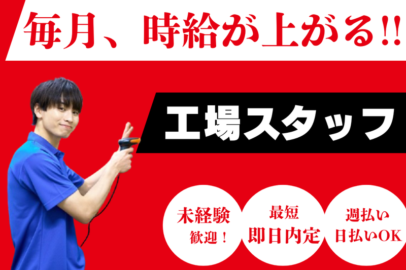 ■求める人物像・資格 *フルタイム勤務でガッツリ稼ぎたい方 *日払いを希望されている方 *学歴・職歴不問 *未経験OK *~嬉しいポイント~* *職場見学OK! *事前研修あり! *ノルマなし! *残業なし! …………………………………………………… 日本語能力試験 N2以上 日本語の読み書き(漢字・かな)必須 JLPT N2+ / Must read & write Japanese (kanji & kana) ……………………………………………………