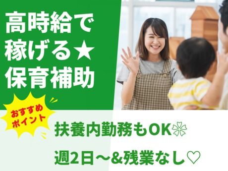 仕事内容 \ここがポイント/ ★高時給1350円! しっかり稼ぐことができます◎ ★勤務時間・日数相談OK! 週2日~勤務OK 扶養内勤務も可能! 子育て中の方も働きやすい♪ ★保育補助業務なので 連絡帳の記入などの書き物業務はなし! ★未経験者大歓迎! 資格は持ているけど経験がない方も まずは1度ご相談ください♪ *・。・。*・。・。*・。・。* <仕事内容> 【未満児クラスの保育補助】 定員90名の保育園でのお仕事です! 未満児クラスの保育補助業務! ・食事のお世話 ・トイレのお世話 ・着脱のお世話 ・保育活動 ・清掃 など ※雇入れ後の業務の変更はありません。 *・。・。*・。・。*・。・。*