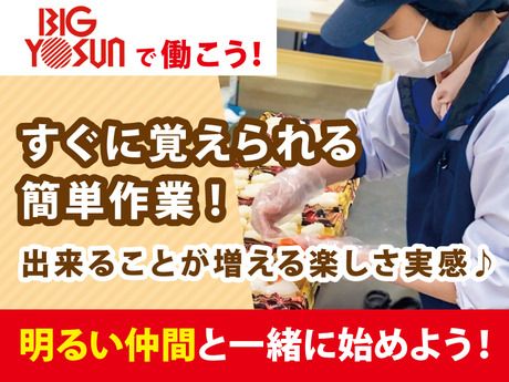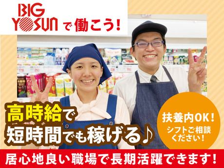 仕事内容 学生スタッフ活躍中!夕方からの勤務なので学業と両立OK! ★〓★〓★〓★〓★〓★〓★ アルバイトデビューを応援! 高校生スタッフ活・躍・中! ★〓★〓★〓★〓★〓★〓★ 学校帰りの放課後バイトに ぴったりの16時以降のお仕事! #週3日~、1日2h~OK! #テスト前はお休みできる! #学校の予定に合わせてシフト調整可能 #シフト自由&残業なし #自転車通勤OK!駐輪場もあり 学生さんにおすすめできるポイントが たくさんあります♪ まずはお店に来てもらって雰囲気を 見てからの応募も大・歓・迎!! 「ここで働きたい!」と思って くれたら嬉しいです♪ 働きやすさ抜群の環境 <バイトデビュー歓迎> 未経験やアルバイトが初めての方も安心! 同じようにスタートした仲間がたくさん! 高校生から大学生まで幅広く活躍中! 高校生から始めて、大学卒業まで 長~く続けるスタッフも多数★ ずっと続けたくなる…そんなお店です♪ <自転車バイク通勤OK> 通勤のしやすさ抜群! 学校帰りやお出掛け帰りにも◎ 【お仕事について】 ・レジ業務 ・品出し ・パック詰め ・清掃 ・カート回収など レジでは商品のバーコードをピッと通すだけ! お釣りは自動計算で出てくるので 間違えることがなくて安心◎ 研修もしっかり丁寧に教えるので、 未経験でもバイトデビューでもご安心くださいね♪ \急な予定もみんなでサポート◎/ ビッグヨーサンの職場は和気あいあい♪ 急な予定が入ったり体調不良の時でも スタッフ同士で助け合っています! 長く働きやすい職場環境づくりを心がけており 働くスタッフをサポートします! 【スタッフの声】 学生なので、時間に融通の利くバイトを 探していて、16時以降で週3日からOK だったので応募しました! バイトは初めてだったのですがみんなが 優しく教えてくれたのでスグ慣れることが できました。 シフトの調整もしやすいので、 学校のテスト期間はお休みさせてもらったり とても働きやすいです!