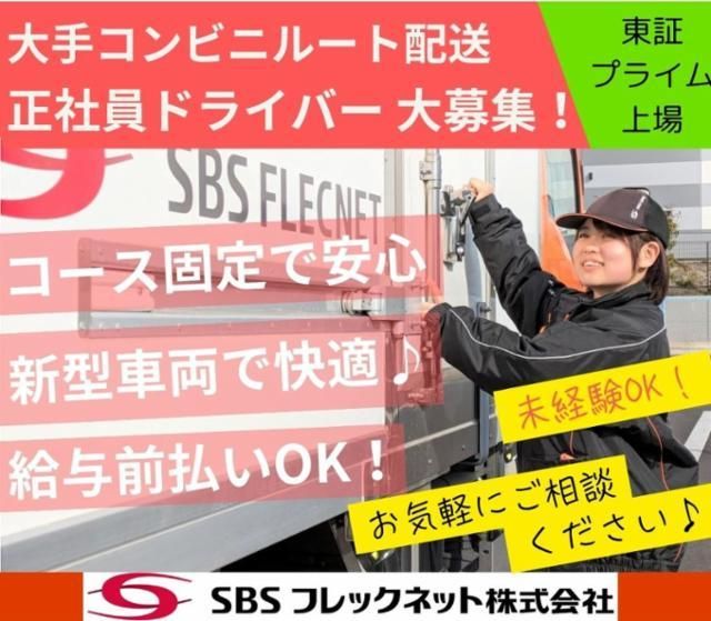 仕事情報 ● 仕事内容 配送センターへの商品の納品がメインのお仕事。業界大手ならではの安定したお仕事で、整備された車両と無理のない安全運行管理でドライバーをサポートいたします。資格取得支援制度もあり、経験を積みながら長期的なキャリアアップも築けます! 丁寧な研修で安心スタート 業界未経験者の方でも安心してお仕事を始めていただけるよう、先輩スタッフが優しくサポート。最初は先輩スタッフがトラックに同乗し、配送ルートや荷積みや荷下ろしなどの作業手順を丁寧にお教えします。SBSグループの研修も定期的に受講できるためスキル・キャリアアップも目指していただけます。 資格取得支援制度あり 入社してから大型や中型自動車運転免許、フォークリフト運転資格を取得したいという方には、当社で試験費用や講座受講費用を会社が全額負担しています。既に資格を取得しているスタッフがレクチャーして、資格取得をサポートします。免許を取得し、自身の成長に繋げていきたい方におススメの制度です。 有休休暇のとりやすい環境 ご希望のお休みを取りやすい環境です。希望シフト提出時に、お気軽にご相談ください。お子様の学校行事も参加したい主婦(夫)の方や、プライベートの時間も大切にされたい方、家族と過ごす時間を大切にされたい方におすすめです。プライベートとお仕事のメリハリをつけて、健康的に楽しく働きましょう! 東証プライム上場グループ SBSフレックネットがお届けするのは、お客さまの生活に欠かせない食品。会社の強みである輸配送全国ネットと、低温管理ノウハウは、お客さまの安心安全な「食の当たり前」を支えます。3温度帯に対応できる会社として、業界トップクラスの品質と実績を持つSBSフレックネットで誇りをもってお仕事しませんか?