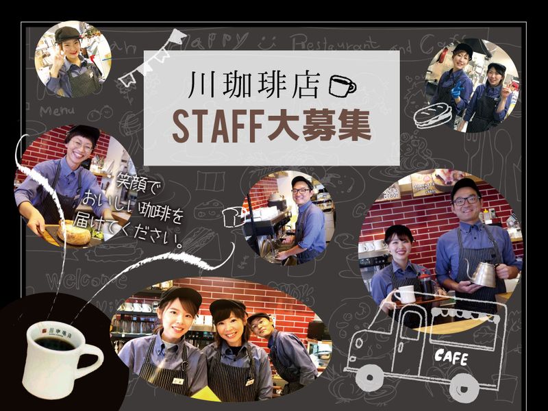 仕事の内容 <アピールポイント> ・学生さん大歓迎♪ ・カフェ未経験の方も大歓迎 ・入社3ヶ月で時給+50円UPのチャンスもあり ・副業・WワークOK! ・バイトデビューさんも大歓迎! ・社員割引制度あり 珈琲が大好きな方、大募集! <学生さん・主婦(夫)さん・フリーターさん大歓迎> 「学校帰りにラスト迄働きたい」 「家庭と両立して働きたい」 「子どもが学校に行ってる間だけ」 「他の仕事とかけもちで♪」 「部活・サークル終わりに働きたい!」 「オシャレなカフェで働くのが憧れだったから、レギュラーで」 「平日は学校で忙しいから土日祝メインで働きたい」 …みんな応募のきっかけは様々! 働き方においてお気軽にご相談ください。 【お仕事内容】 主にカフェでの業務をお任せします! 厳選された生豆の選定、自家焙煎、 抽出方法までこだわったカワの珈琲ショップ☆ 自家製のフードメニューやケーキ、 焼き菓子なども取り揃えており、 珈琲器具の販売などもしています♪ 具体的には・・・ ・レジ業務 ・ドリンクやフードの調理、提供 ・アイスクリーム盛り付け お客様に心地よく過ごしていただける 環境作りを目指します。 接客が好きな方大歓迎です! 平日の学校終わりや、 土日がっつり働きたい方、お待ちしています♪ ★カワで働く時に大切なこと★ 接客をしたことがなくても未経験者大歓迎です! 人と話をすることが好き、パンが好き、そんな「好き」な気持ちが大切です! 1,食べることが大好きで「食」の世界に興味がある人 2,相手の立場になり「返事」や「挨拶」の大切さがわかる人 3,「失敗OK!」積極的に挑戦する気持ちが持てる人 4,One for All, All for One!!「明るく元気にきびきびと」行動が出来る人 私たちは、店舗の仲間、会社組織、地域社会、 様々な人と関わり、生活を共にしています。 一人ひとりがみんなのために、みんなが一人ひとりのために、 「相手」を想いやり行動することで、 ようやく、ご来店いただけるお客様に「喜び」や「感動」を与えられると思います。 こちらの4項目の大切さに「共感」いただけるなら、 是非、カワのフィールドで働いてみませんか。 《社員割引制度あります!!☆》 〇パンを買うときに社員割引をいたします!! パンが大好きな方には嬉しい待遇ですよね! 我が社のパンは美味しさには自信がありますので堪能してください♪ <カワからのメッセージ> 今年で弊社は創業40年目を迎えます。 長寿企業数が世界一の日本において、 創業30年を越える企業の割合は、0.02%、 つまり、5000社あって1社しか生き残れない割合と言われています。 この中で40年目を迎える私たちの企業は、 これまで理念に則り、実直に運営してきた先輩や上司があってこそであり、 また私たちと今後入社される皆さんによって、 50周年を迎え、更に100年企業への実現を目指していきたいと考えております。 この「存続・継承」という形で、 地域・社会へ更に貢献していける企業を私たちと共に目指して行きませんか。