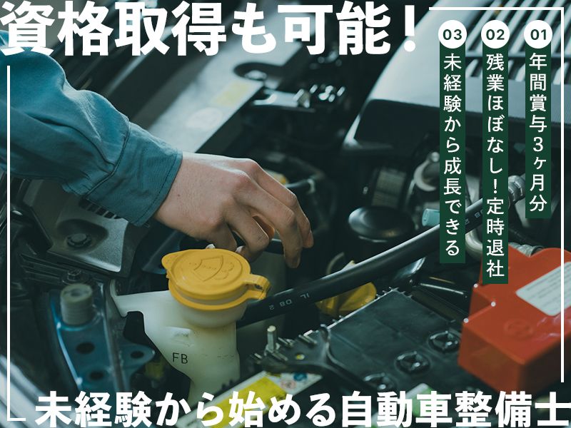 仕事内容 ・-・-・-・-・-・-・-・-・ 「車が好き」を仕事に! ベテランの整備士がイチから教えます。 手に職をつけて、 一生もののスキルを身につけませんか? ・-・-・-・-・-・-・-・-・ \働くうえでのポイントは?/ ✅賞与+昇給あり! ✅未経験者歓迎! ✅実働7.5時間 ✅残業はほぼなし! ✅風通しの良い職場! _/_/_/_/_/_/_/_/_/_/_/_/ 【仕事内容】 自動車の車検・一般整備から、重機や シニアカーのメンテナンスまで、幅広い 業務をお任せします。 ●自動車の車検・一般整備 →オイル交換、タイヤ交換、不具合箇所の 修理。 ●重機・シニアカーのメンテナンス →建設現場などで使用される重機や、 ご高齢の方の移動を支えるシニアカー の整備もお任せします。 _/_/_/_/_/_/_/_/_/_/_/_/ 未経験からプロの整備士を目指せます! 「自動車整備士の経験がない」という方も 大歓迎です。ベテランの先輩が指導します ので、安心してスタートできます。