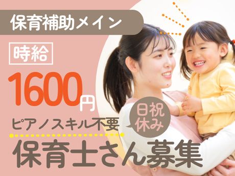 \保育補助業務がメイン/高時給1600円|週3日勤務~|日祝休み|時短勤務も相談OK|残業ほぼナシ♪