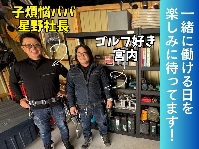 アピールポイント: ========================= 星野社長と宮内からのメッセージ ========================= ▼社長・星野(47歳) ー社長の経歴を教えてください! この業界に16~17歳のときに入ったので、今年で大体30年目になります。 ずっと自分の会社を持ちたいと考えていて、昨年会社を立ち上げました。 「Hi TrusteQ」、読み方は「ハイトラステック」です(笑) この社名には「High(高い)」「Trust(信頼)」「Technology(技術)」「Quality(品質)」の4つの意味を込めています。 ー会社について教えてください 2024年1月に設立した、まだ若い会社ですが、前の会社からの縁もあって、たくさんのお仕事の依頼をいただき、むしろ多すぎてお断りも入れている状況です。 ですので、”あなたの力で当社を助けてください!”というのが正直なところ(笑) ゆくゆくは外注せず、全部の電気工事を当社で受け持ちたいと考えており、直近3~6年で6人体制の会社にしたいと考えています! ー一緒に働く仲間のこと いま活躍中の宮内は、前の会社の部下です。 10年前に入社したときからの付き合いで、会社を立ち上げるときに「一緒にやろう」と誘いました。本当に仕事ができて、責任感もある良いヤツなので、きっと新人さんの頼れる先輩になってくれると確信しています。 ー応募者さんに一言! 学歴や経験は一切不問の採用です。 新しい仲間を私も宮内も心待ちにしています! ~~~~~~~~~~~ 星野社長DATA 子ども2人が大好きな子煩悩パパ。 趣味は、ゴルフ、上の子のサッカーの試合観戦、下の子とサイクリング。 料理も得意で、とくに煮込みハンバーグは絶品。(本人談) ~~~~~~~~~~~ ▼先輩社員・宮内(31歳) ーお仕事のやりがいは? 当社の仕事は新築の建物の電気工事が多く、自分の仕事で何もなかったところに電気が灯るのを見たときは、やはり大きなやりがいを感じられます。 現場によってやる作業は全然違ってくるので、それも面白さのひとつですね。 ーハイトラステックの特徴は? 社長を含め社員2名の小さな会社ではありますが、仕事の規模感がとにかく大きいのも特徴かもしれません。これまでには「埼玉県のとある駅チカの大型テナントビル」「東京都内にできる新築の学校」を手掛けてきました。●● ーどんな方に来てほしいですか? 真面目で素直な方に来てもらえると嬉しいです。 手取り足取り仕事をイチから教えていくので、どうか心配しないでください! 第二種電気工事士の免許を取得すれば仕事の幅が一気に広がってさらに仕事が面白くなるので、まずは来年5月の試験に向けて勉強していきましょう。 この会社で初めての後輩ができるのが、いまからとても楽しみです。 ぜひ一緒に働きましょう! ~~~~~~~~~~~ 宮内DATA 電気関係の専門学校を卒業後、前の会社に入社して星野と出会う。新しい会社を立ち上げることを聞いて創業メンバーとしてジョイン。 趣味は星野社長と同じくゴルフ、最近は「キンミヤ」にハマっている。 ~~~~~~~~~~~