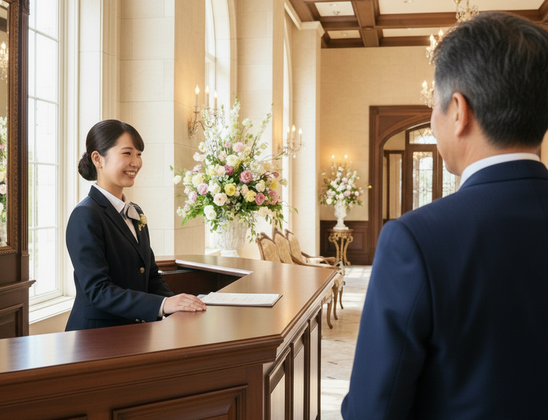 仕事内容 ✨花嫁さまの一番近くで寄り添う“アテンド業務”が中心です✨ 挙式前〜披露宴まで、ドレス・動き・気持ちを支える特別なサポートをお任せします⏩⭐ ⏩挙式前の準備サポート(リハーサル1時間前〜) ・新郎新婦の控室へご挨拶 ・ドレス・タキシードの最終チェック ・ブーケのお預かり・お渡し✨ ・ベールや小物の調整 ・写真撮影前の姿勢・向きのサポート ⭐挙式中のサポート ・入場時の立ち位置・タイミング案内 ・ドレスの裾・ベールを美しく整える ・指輪交換・誓約シーンの補助✨ ・水分補給の声かけや、簡単なフォロー → 花嫁さまの“緊張がほぐれるような”さりげない支えがポイント❗ ⏩披露宴へのご案内・移動サポート ・会場までの誘導 ・移動時のドレスサポート(裾継ぎ) ・新郎新婦が安心して歩けるよう伴走✨ → 写真スポットへ向かう際の誘導などもお任せします⭐ ✨披露宴前後のフォロー ・メイクやヘアの乱れチェック ・小物の受け渡し ・写真室やロビーへのご案内 ・プランナーとの連携で進行をスムーズに → 全体の流れを“やわらかくつなぐ”役割です❗ ✅この仕事の魅力 ・花嫁さまの“いちばん近く”で感謝を直接もらえる ・所作・言葉遣い・立ち居振る舞いが自然と美しくなる✨ ・未経験でも先輩が横について丁寧にフォロー ・大理石ロビー×シャンデリアの格式ある空間で働ける⭐