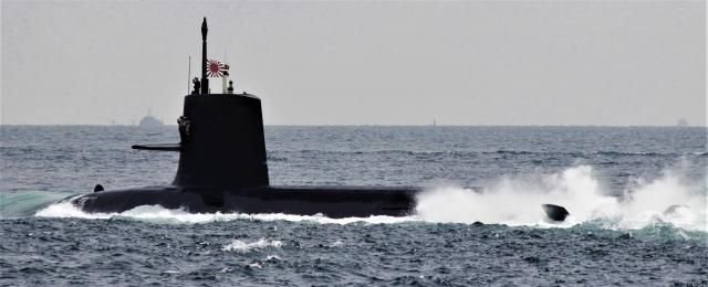 三菱重工神戸造船所内での潜水艦のメンテナンス作業