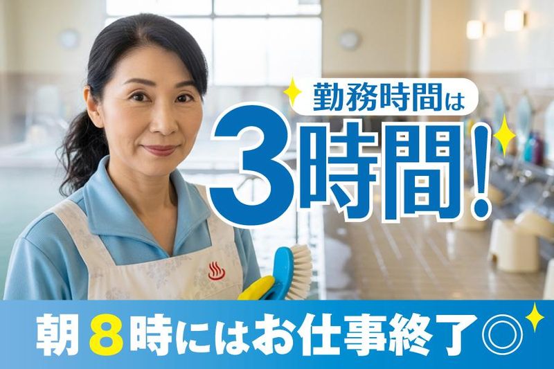 仕事内容 ✨朝2・3時間だけのお掃除スタッフ✨ ✨未経験でも高時給1300円スタート✨ ✨無料で温泉が利用できる特典付♪✨ 都内にいながら源泉かけ流し天然温泉が 味わえる高級旅館風の温泉施設で、 お掃除スタッフ募集中! 浴室やロッカー、脱衣所・トイレなどの モップ掛けやごみ回収をお任せします。 とても綺麗な施設なので 「汚れをお掃除する」というよりは 「キレイをキープする」といった感じです◎ 何人かで分担してお掃除を行いますので 1人1人の負担も軽め。 無理なく長く続けられますよ。 ポリッシャーができる方、積極採用! 男性活躍中♪ ✨✨無料で施設の温泉が利用できます✨✨ オープン前時間のお仕事なので、 お客様の対応やご案内はありません。 更に勤務後は従業員特典として 無料で温泉に入れます! 天然温泉に癒されながら お掃除でかいた汗をサッパリ流して 帰れると好評です♪ コツコツ・黙々作業が好きな方、 早起きが得意な方や温泉が好きな方、 ぜひお気軽にご応募ください◎