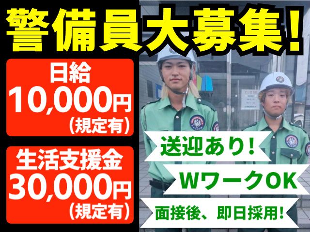 仕事内容 <パルズパートナーのアルバイトはココに注目> ・時給1,200円+生活支援金30,000円(1か月問題なく就業)(※規定あり) ・週払い制度あり ∟急な出費にも対応可! ・即日採用 ∟面接は1回のみ。面接後その場で合否報告!更に出張面接も行います! ・送迎あり ∟ご自宅の近くまで当社スタッフが送迎! ・早上がりになった場合でも1日分の給与保障 ∟基本定時までの業務ですが、場合により早上がりになるケースもあります。 その場合も1日分の給与を保障! <警備員のお仕事内容> ・交通誘導警備 道路や工事現場で工事車両や一般車の誘導、歩行者の安全確保を行います。 ・イベント・雑踏警備 お祭りやライブなどが開催される際、来場者の誘導や案内業務を行います。 様々な警備業務がありますが、しっかり研修を行ってから現場でお仕事デビューとなります。 警備経験がなくても大丈夫です。 【押しポイント】 ・日勤専属 ・週2日~勤務可 ・警備業未経験OK ・短期、長期選べる ・週払いあり(規定あり) ・マイカー通勤OK、送迎あり ・20代、30代、40代、50代、60代、70代活躍中 <幅広い世代活躍中> 若い方からミドル(中高年)・シニアの方まで幅広い年代が活躍中の警備員のお仕事! 中高年・シニアの方も多数活躍しています! 60代の方も70代の方も応募可! <無資格・未経験OK> 警備員未経験でもしっかりとした研修や資格取得支援制度があるので安心してスタートできます! 異業種からの転職もOK! <警備経験も活かせます!> ・施設警備 ・常駐警備 ・駐車場警備 ・交通誘導警備 など警備経験がある方や資格がある方は即戦力として働けます! 幅広い年代が活躍できる警備のお仕事です。 お問合せだけでもOK! 警備に興味がある方はぜひご応募ください!