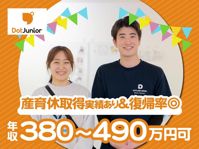 仕事内容 \年休120日+月平均残業10h未満/ 子どもの成長に寄り添える喜びと、 キャリアアップも目指せるチャンス! 私生活も大切にできる職場です◎ ❖給与改定年2&月給25.7~26.5万円❖ ―・―・―・―・―・―・―・―・―・―・―・― 研修・制度が充実しているから、 未経験でも安心してスキルを習得! "子どもと楽しみながら働ける環境"で 自分の成長も実感できる毎日へ✨ 「子どもとしっかり向き合いたい」 「仕事のやりがいも、待遇も欲しい」 「将来のキャリアもちゃんと考えたい」 という方にピッタリ! ✅ 言語聴覚士や心理士も在籍 しているので安心! ✅ プログラムを1から立案できるので やりがいもバッチリ ─────────────────── ……⭐今の職場と比べてください⭐…… 働き方も収入も、もっと良くなるチャンス! ─────────────────── ✅年収380万円~490万円も可能 ✅副業OK&キャリア選択制度あり ✅研修制度・資格取得支援も充実 ✅産育休取得実績あり&復帰率も◎ ✅社内転職制度で多彩なキャリアパス <⏩子どもの成長をずっと見届けられる> 就労支援も行っている当社では、 子ども達が放課後デイサービスを "卒業した後も" サポートすることが可能です。 たくさんの子ども達の成長と 教育環境の向上に携われるので やりがいや達成感も大きいです! <⏩お仕事内容> ★具体的には ・児童支援(各種プログラムの実施) ・送迎業務(学校、施設、自宅) ・月間プログラム作成 ・個別支援計画の作成 など 個別計画支援に沿って支援を進めていく中で 訓練や改善が難しいことも出てくると思います。 でも、ドットジュニアなら安心。 指導員だけでなく、言語聴覚士や心理士も 同時に在籍しているため、課題に対しての スペシャリストと一緒に支援していきましょう。 <⏩1日の流れ(例)> 10:00~ 教室内の掃除、当日のプログラムの確認や事務業務 14:30~ お昼休憩の後は子ども達をお迎えへ 15:30~ 子ども達が教室に集まったら、プログラムがスタート! 17:30~ 帰りの準備、子ども達をご自宅まで送り届けます。 18:30~ 帰ってきたら翌日の確認、記録などの業務 19:00 1日の業務が終了 ⭐プログラムを1から立案 季節のイベントやクッキング学習、 運動プログラム、買い物学習など 多彩なプログラムを実施しています。 決められた枠組みのない中、 お子さまの特性に合わせて1から 自身でプログラムを立案していただきます。 ・従事すべき業務の変更の範囲:法人の定める業務 ・就業場所の変更の範囲:法人の定める就業場所 <⏩5つの療育クラス> お子さま一人ひとりの興味関心・可能性を 最大限に引き出すべく、 「5つの療育クラス」を実施しています。 ●ソーシャルスキルアップクラス ●運動療育クラス ●クリエイティブクラス ●特別活動クラス ●就学準備クラス(未就学児対象) 全てのクラスに共通するのは”楽しいこと”! 遊びに関する科学的知見をもとに プログラムを開発しているので、 児童指導員として新しい視点や教育を学び、 身に着けることが可能です! <⏩入社半年からキャリアアップを目指せる> ・選べるキャリアコース 現場での支援スキル向上を目指す ➡「プロフェッショナルコース」 本社で管理職として組織運営にチャレンジ ➡「マネジメントコース」 希望に応じて選択することができます。 直近6ヶ月では、入社からわずか半年で 管理職に昇進した実例が3人も! 年収60万円UPも可能です。 >>業績好調で事業所数も増加中<< 短期間で成果を上げ、リーダーシップを 発揮できる環境が整っています! 【スタッフは「楽しく!」がモットー】 社会で生きるための力である ”ソーシャルスキル”、”ライフスキル”は 勉強などの「知識」では身につきません。 「体験」を通じて身につけるものです。 さらに、その体験は「前向きな体験」であることが、 発達段階のお子さまにとっては 非常に重要な要素となります。 つまり、「楽しくなければ」 なかなか身に付かないのです。 だからこそ、当社では スタッフがまず「楽しく!」をモットーに、 お子さまにとって楽しく ワクワク取り組める環境を作っています! ・―・・―・・―・・―・・―・・―・・―・・―・・―・・―・ ✨転職をお悩み中の方はこちら!✨ \*会社説明会随時開催中*/ *履歴書不要! *スーツ着用不要♪私服OK *質問はNGなしでお答えします! 参加方法は「オンライン」「対面」お好きな方法をお選びください♪ ~こんなお悩みがある方は今すぐ参加!~ ・話しは聞いてみたいけど、履歴書や職務経歴書を準備する時間がない。 ・在宅分野に挑戦したいと思いながら、踏み出すのをためらってしまう。 ・時短勤務で働きたい。土日休みで働きたい。でも、面接で相談しづらい…。 もちろん話しを聞いてみたいだけ!という方も大歓迎♪ よくある質問をチェック! ✅残業や休日について ✅疾患や年齢層など、どんな患者さんが多いの? ✅病院との違いは? ✅どんなスタッフが働いているの?職場の雰囲気は? ✅研修制度、資格取