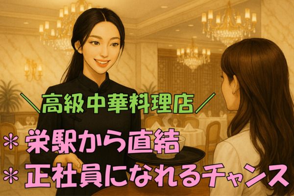 \高級中華料理店で働ける!/正社員になれるチャンスあり/サービス業の基本から学べる/栄駅から直結で便利◎/キッチン業務なし/30代男女活躍中