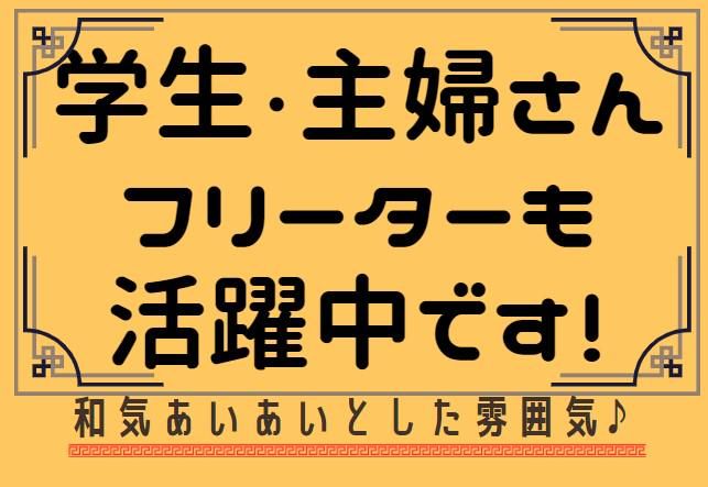 仕事内容 \ 地元の人に愛される! / おいしい餃子が人気なお店です! 【 ホールスタッフ 】 ・オーダー取りや接客 ・料理、ドリンクの提供 ・テーブルの片づけ など ホール業務全般をメインにお願いします! ステップアップで簡単なキッチン補助もお任せ! \オススメPOINT/ ・1日3h~ok!柔軟なシフト ・時短勤務ok!家庭との両立、平日のみも可 ・賄い制度あり*食費節約にも。 ・20代・30代・40代の学生や主婦さんが多数活躍中!