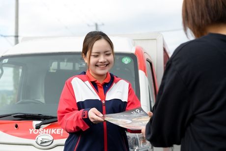 仕事内容 【仕事内容】 【未経験でも安心!フォロー体制抜群!】 一人で業務をこなすまで全力サポート! 未経験の方でも安心です。 【頼れる先輩がいること】 いつでも周りのメンバーやリーダーに相談可能! 困ったことがあれば、なんでも頼ってください! 【働く女性を積極的にサポート!】 ・女性のキャリアアップも狙える →管理職も7割が女性のヨシケイ。 産休・育休制度なども整備されているので、 女性がプライベートもキャリアも諦めずに働ける環境があります! *ー*ー*ー*ー* *仕事内容* 私たちの仕事はただの食材の配達ではありません。 「笑顔のある「食卓」をつくるお手伝い。」 これがヨシケイのサービススタッフのお仕事です! ー具体的な業務内容ー ・新鮮な夕食材料やメニューカタログの宅配ドライバー ・夕食材料季節商品の販売 ・新規お客様の管理 ・担当範囲内でポスティング ・伝票整理などの簡単な事務業務 また、評価制度や昇給制度もございます。 ご不明な点はお問い合わせください^^ 【アピールポイント】 *【お届けする人が1番の笑顔に!】* それを叶えるため私たちは従業員の 働きやすさを重要視しています! *★正社員で安定して長期活躍可能!* *★土日休みでプライベートも充実!* *★基本的には定時退社で家庭と仕事の両立可能!*