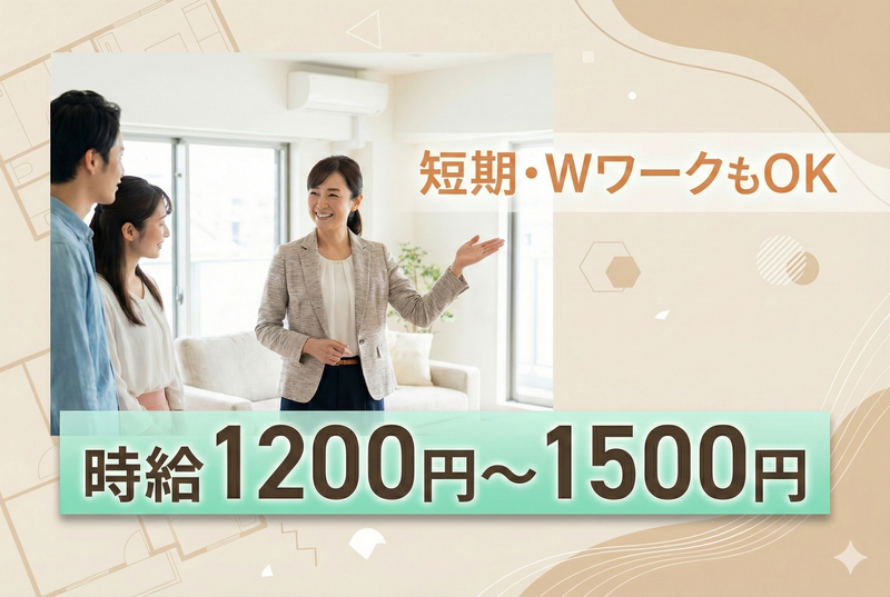 仕事内容 ★時給1200円~1500円! ★週3日~ok×実働5時間以上! ★子育て世代多数活躍中! ――――-・。*☆ 仕事内容 ☆*。・-―――― ・営業担当からの依頼を受け、 お客様を物件(現地)までご案内・送迎 ・物件の写真撮影 ・書類の受け渡しなどの 簡単なサポート業務 ★営業活動を支えるサポート役と してご活躍いただきます。 ★未経験の方でも安心して 始められるよう、 丁寧にフォローいたします。 ★「人の役に立ちたい」 「チームを支えたい」という方に ぴったりのお仕事です。 ――-――-――-――-――-――-――-―― ☆こんな方を大歓迎! ・メインの仕事と別で稼ぎたい。 ・接客や運転が好き。 ・地域・社会の役に立ちたい。