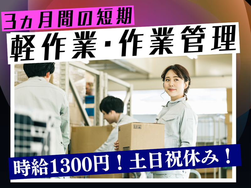 1月5日~4月中旬の短期!時給1300円!土日祝休み&週3~