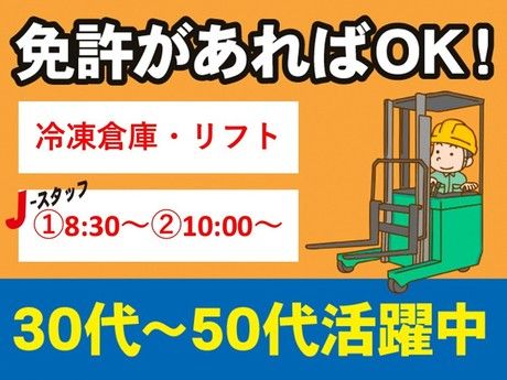 仕事内容 仕事内容 ☆急募☆ 冷凍・チルドのセンター内での入出庫・在庫管理業務 リーチリフトでの仕事・ピッカーでの仕事を選べます! 基本的に8~9割はリフトに乗りっぱなし! 具体的には? ・パレットで入荷された商品をリフトで規定の場所に格納 ・注文が入った商品をパレットごと出荷場へリフトを使用して移動 作業エリアは冷凍・チルドでの作業になります! 給与 時給:1,450円 (交通費支給あり) 勤務時間/日数 (1)8:30~17:30 (2)10:00~19:00 ★勤務時間は選べます! ★週5日勤務(月曜~土曜日でシフト制) ★日・祝はお休み!