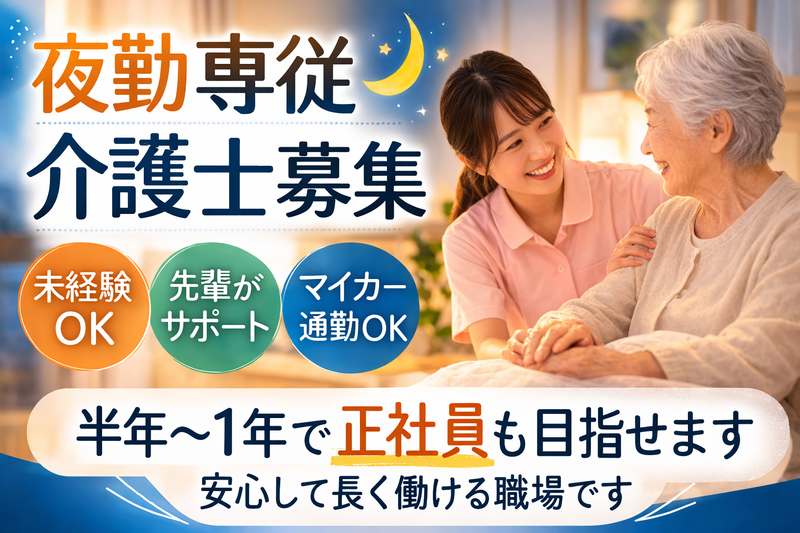 夜勤でしっかり稼げる介護職。未経験からスタートOK。半年~1年で正社員も目指せます。