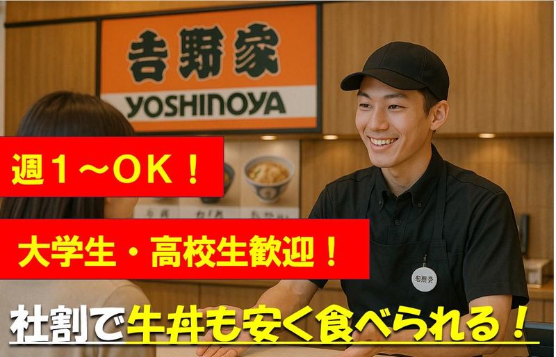 仕事内容 吉野家のアルバイトスタッフの募集です☆ 【仕事内容】 牛丼屋にてレジ・テーブルの片付け・調理・配膳などをお任せ! お肉は既に切ってあるものを調理するため包丁は使いません! 難しい作業なしなので安心♪ 【働く上でのポイント】 ✅週1日~OK ✅1日3時間~OK ✅平日のみOKだから家庭とも両立◎ ✅シフト相談もしやすいので、学業は家事との両立◎ ✅お子様のお迎えなどももちろん考慮 ✅カンタン作業ばかりなので安心 ✅マニュアル完備で先輩スタッフも丁寧に教えるから未経験も安心☆ 【実際勤務しているのスタッフの声】 『子供の体調が悪い時にお休みを頂けました♪』 『シフトの融通が利くから授業も遊びも旅行も調整しやすいです!』 『テスト期間も考慮してくれるのが嬉しい』 『未経験でもすぐに仕事慣れましたよ♪』