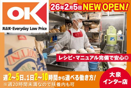 仕事内容 【 お仕事内容 】 ★未経験歓迎!丁寧に教えます!主婦活躍中♪ ★品出し・陳列メイン◎ ★扶養内OK/家庭と両立しやすい! 【おまかせするお仕事は…?】 ・パンの袋詰め ・商品を並べたり、値段シールを貼ったり ・売り場に商品を出す(品出し) ・慣れてきたら、ちょっとした発注のお手伝いも♪ パンの香りに包まれながら、コツコツ作業。 接客少なめ・覚えやすいシンプルワークなので、 未経験の方も安心です◎ 【安心ポイント!】 ■ 丁寧な研修あり♪ゼロからでも始めやすい! ■ 午前中だけのシフトもOK!家庭や自分の時間と両立◎ ■ 周りもみんなスタートラインは一緒♪オープニング仲間で安心 【 オーケーの魅力♪ 】 <ちょこっと買い物もラクラク♪> お仕事のついでに、 そのまま夕飯の材料や 日用品もまとめてお買い物♪ 「帰りにスーパー寄らなくていいから助かる!」 と大好評◎ 時間もムダなく使えて、 毎日の家事もスムーズになりますよ。 <自分のスタイルに合わせて勤務> ■ 「家族の予定を優先したい」 「趣味の時間も大事にしたい」 そんな方も安心♪ ■ 短時間勤務もOK! 「ちょっとだけ働きたい」 「外に出て働きたい」 って方にもぴったり! ブランク明けの職場復帰や、 久しぶりのお仕事スタートにもオススメです◎ ■ゆとりある人員配置で安心 1店舗あたり社員さんが18~19名いるので わからないこともすぐに相談できて安心♪ 業界的にも社員数が多い職場だから、 とっても心強いですよ! 【 しっかりした研修あり 】 仕事のやり方やルールなど 基礎から実践までじっくり身につけられます! ・経験豊富な社員がしっかりサポート! ・分からないことも、すぐに聞ける環境◎ ⇒勤務初日から1人にさせない安心の職場です♪ 【 大泉インター店へのアクセス詳細 】 <バスの場合> 国際興業バス「比丘尼橋」下車、徒歩1分 ・地下鉄成増駅から乗車の場合 「成増駅南口」バス停から14分 ※平日は1時間に5本~6本 休日は1時間に4本~5本 ・石神井公園駅から乗車の場合 「石神井公園駅北口」バス停から15分 ※平日は1時間に4本~6本 休日は1時間に3本~5本 <徒歩の場合> 西武池袋線「大泉学園駅」から徒歩25分! 西武池袋線「大泉学園駅」北口を出て グランエミオさん手前のエスカレーターを降ります。 そのまま東急リバブルさん方面へ直進し、 交差点を右に渡ります。 靴流通センターさんを通り過ぎ、1つ目の路地を左折。 すぐに右折し、道なりに進むとT・ジョイさんが見えてきます。 T・ジョイさんを過ぎ直進し 大通りに出ると左手にお店があります。 ※自転車通勤応相談 【 勤務形態について 】 この求人はアシスタントパートナー社員の募集です! アシスタントパートナー社員とは? アルバイト・パートとして、週20時間未満で働く 扶養内勤務可能な勤務形態です!