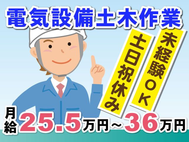 仕事内容 レア求人‼ 新着! 集まり次第終了の求人です! 前橋市上佐鳥町にあります、 「株式会社 若電」にて、 送電、電気設備作業スタッフ 正社員を募集いたします。 ━━━━━━━━━━━━━━━━━ \アピールポイント/ ━━V━━━━━━━━━━━━━ ・土日祝休みの週休2日制で年間休日125日! ワークライフバランスも良好! ・未経験でも月給255,000円~スタート! ※経験者は、優遇致します。 ・ 土木関係資格保持者歓迎します。 ・未経験の方や現場作業が初めての方も リーダーが丁寧にサポートしますので 初めてでも大丈夫です。 ・Uターン・Iターン希望者歓迎! (宿舎あります。) ━━━━━━━━━━━━━━━━━ <仕事詳細> 送電線工事、電気設備の 現場での作業となります。 ・現場でのサポート作業 ・運搬、運転 (重機オペレーター) ※高所作業もあり ━━━━━━━━━━━━━━━━━ 採用に関するお問い合わせは 下記までお気軽にご連絡ください。 株式会社 若電 TEL027-289-2036 採用担当まで ━━━━━━━━━━━━━━━━━ 気になる方は下記ホームページをチェック‼ <当社HP>https://www.wakaden.biz/ ━━━━━━━━━━━━━━━━━ 【キーワード】 現場作業/土木作業/高所作業 電気設備/送電線工事 未経験者/経験者/初心者 男性活躍中/現場サポート